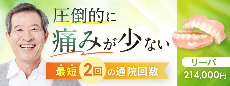 なお、リーバのクッションははがれにくいため、「以前やわらかい入れ歯を作ったけれど、すぐにはがれてしまった」という方にもおすすめです。最新技術を駆使し、歯ぐきに優しい入れ歯をご提供いたします。